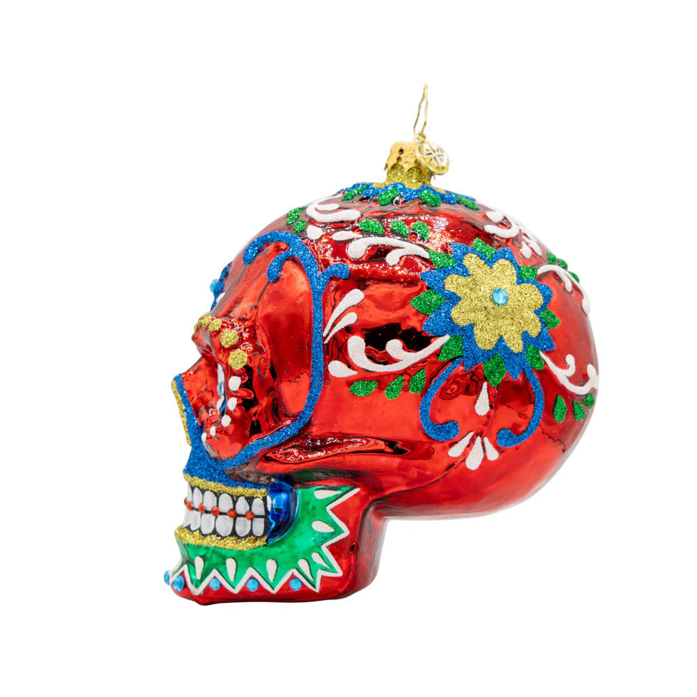 This festive skull ornament is a must-have for any spooky season celebration. With its vibrant colors and intricate details, it's sure to add a touch of whimsy to your holiday decor. And let's face it, who doesn't love a skull that's not so scary?