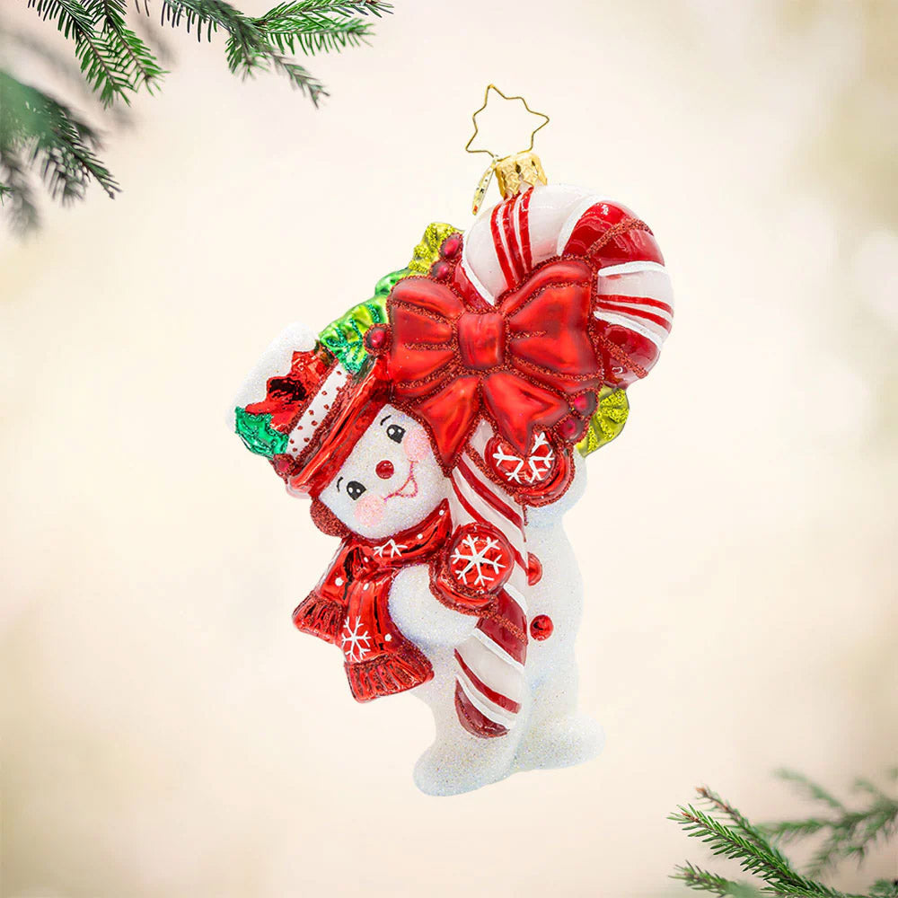 Sweet as snow! This frosty friend comes with a candy cane big enough to share—if he doesn’t eat it first!