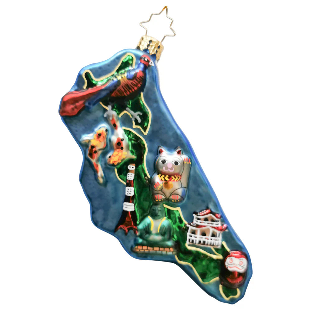 A touch of Japan, wrapped in holiday cheer! This beautifully crafted ornament evokes the serene beauty and rich traditions of Japan, offering a unique and sophisticated way to infuse your home with global charm this season.