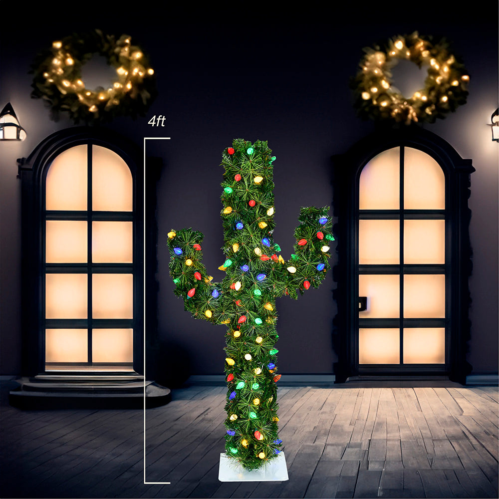Prelit Multicolor C7 Bulb LED Cactus 4'