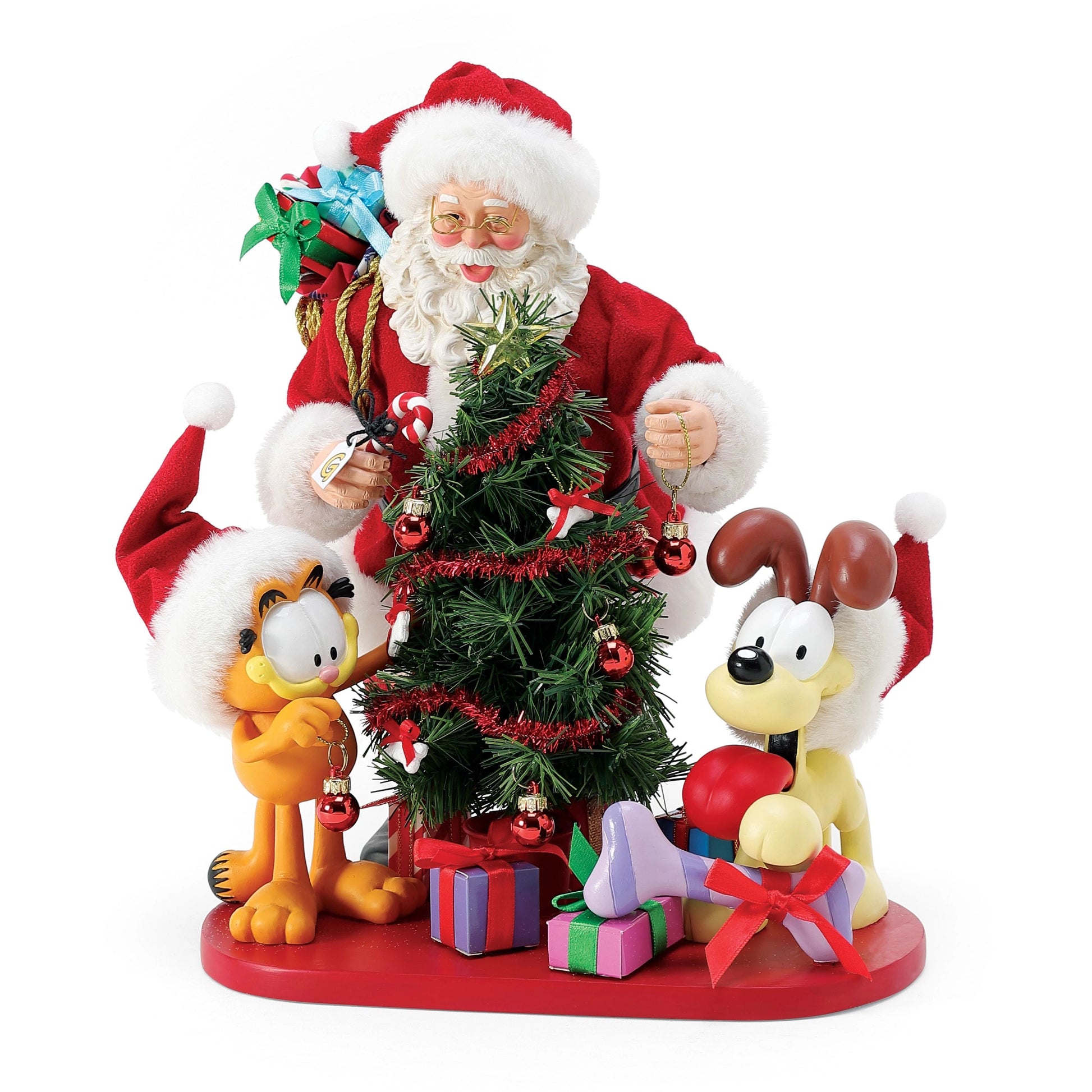 Garfield and Odie help Santa decorate the Christmas tree with pet themed ornaments.