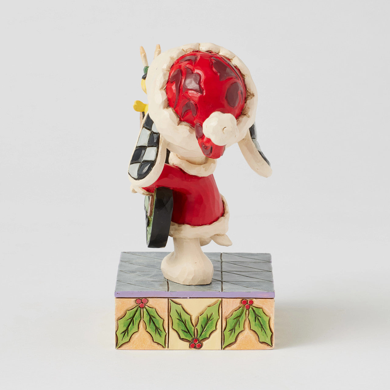 Rock around the Christmas tree with this lively Jim Shore design of Snoopy and Woodstock in full holiday groove. Snoopy sports a Santa hat and sunglasses as he strums an electric guitar coolly, while Woodstock enjoys the show with reindeer antlers.