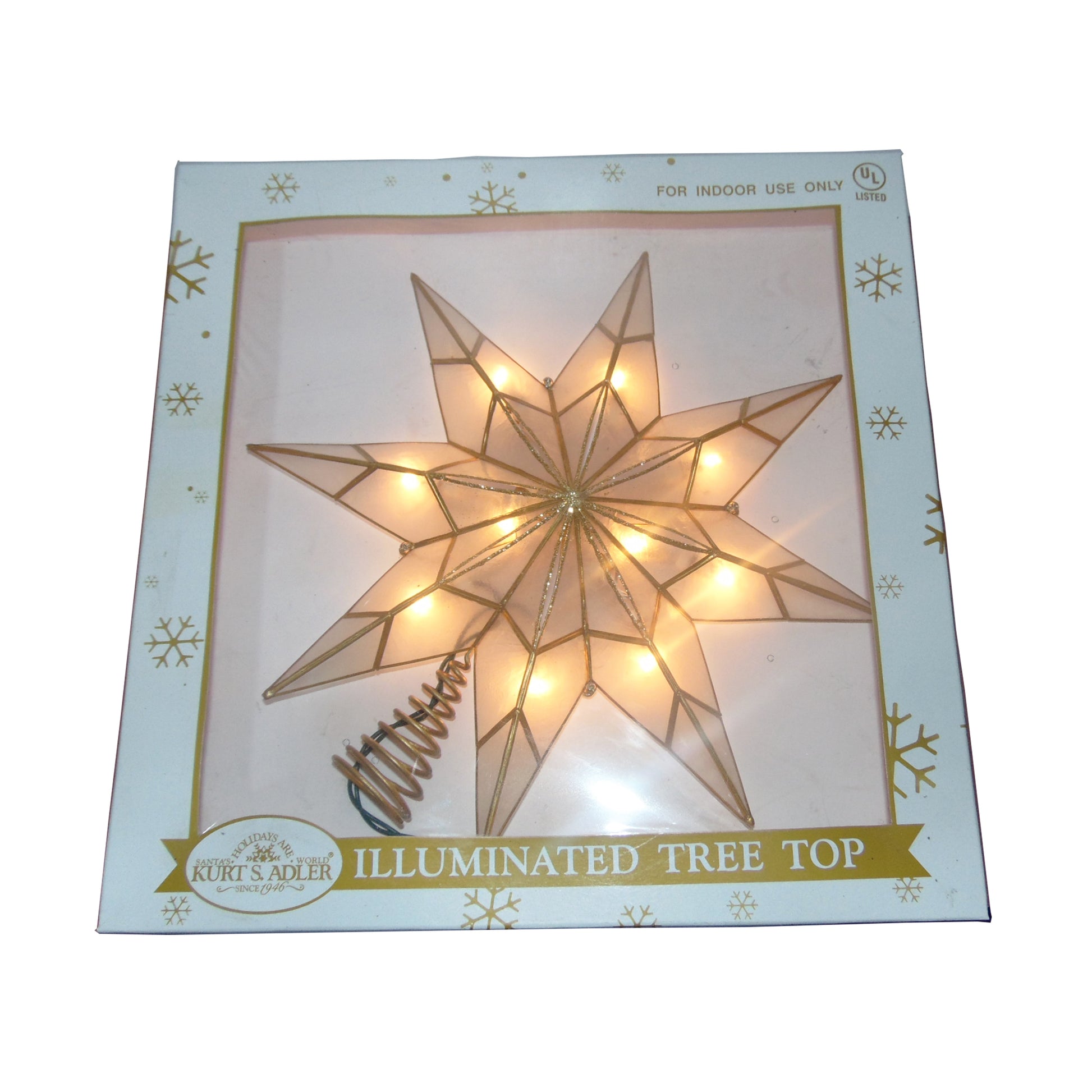 This Kurt Adler 10-Light 8-Point Gold Capiz Star Treetop is a beautiful and unique addition to your Christmas tree décor. This 8-point star features gold glitter and gold edge detailing.