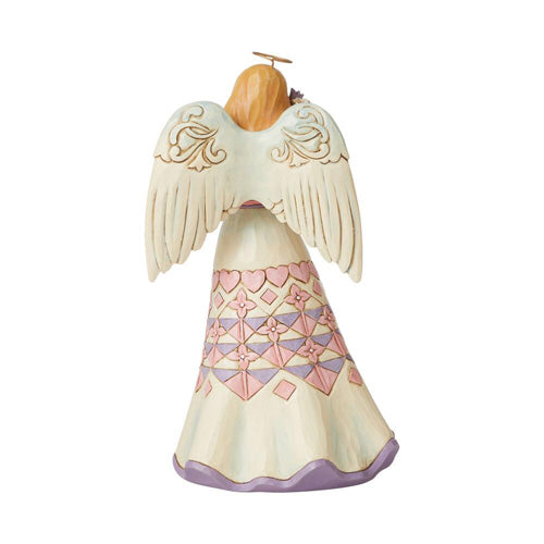 Handcrafted in subtle pastels featuring Jim Shore's unique quilt patterns and folk art design, this Angel holds a bouquet of flowers for Mom. This heartfelt gift is a symbol of love perfect for Mother's Day, birthdays, or a regular Tuesday.