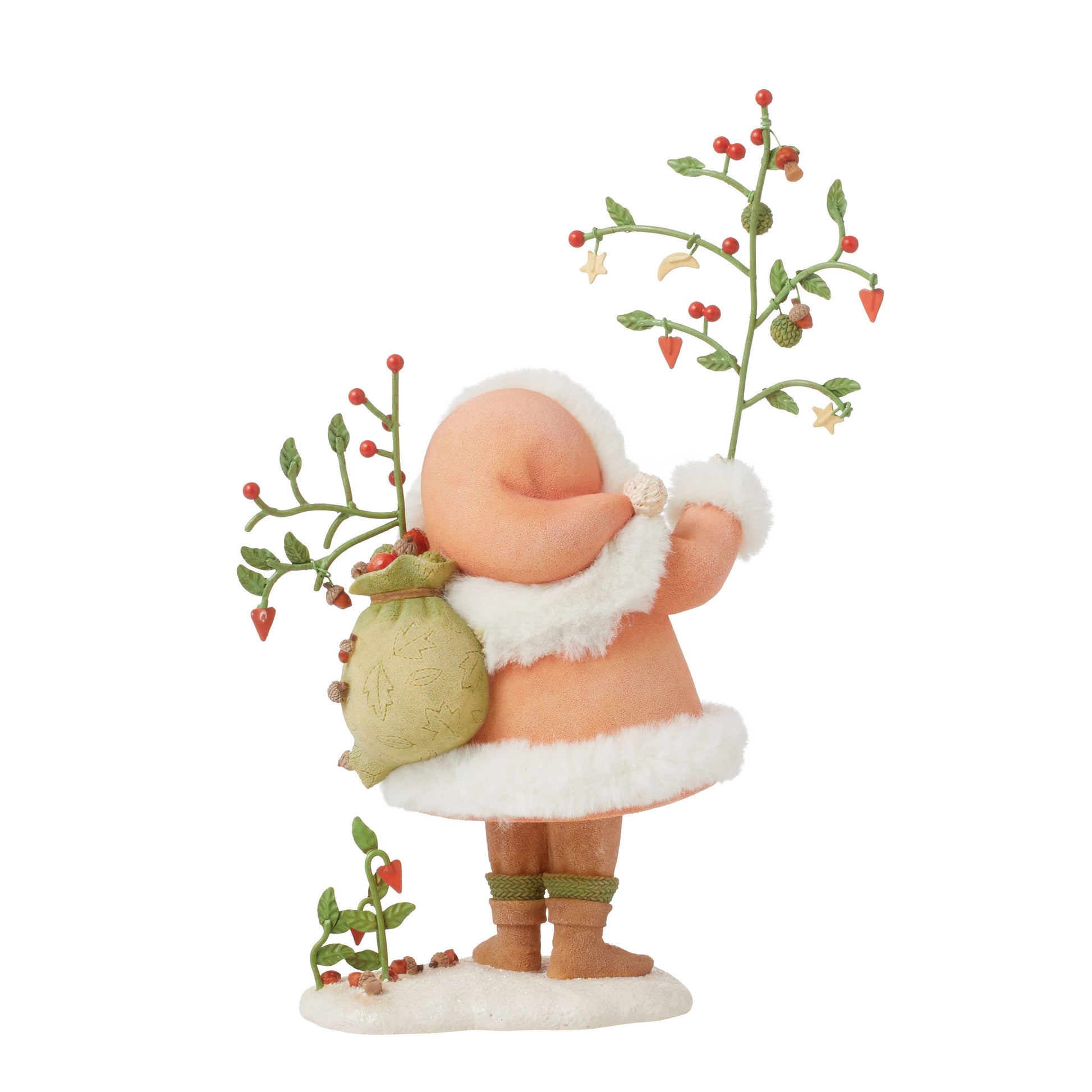 Karen Hahn's Nature Santa Figurine. Santa is trying out a soft pastel look this season. He holds his own visions of nature. Total height is 8.75 tall when you place the tree in his hand.