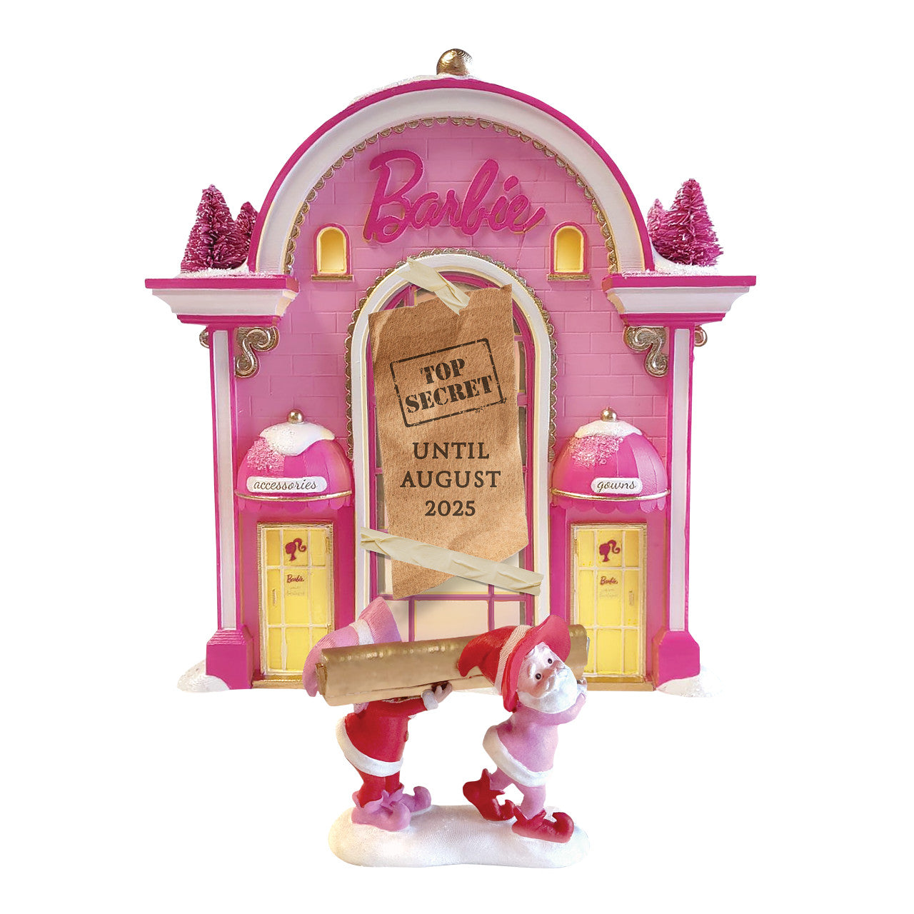 Department 56 is thrilled to announce an all new collaboration with Matel that is so special, so secret, that there exists an embargo from showing the design until sometime on 2025. Watch your email for an announcement about this stunning new piece, tailor-made for the North Pole Series!