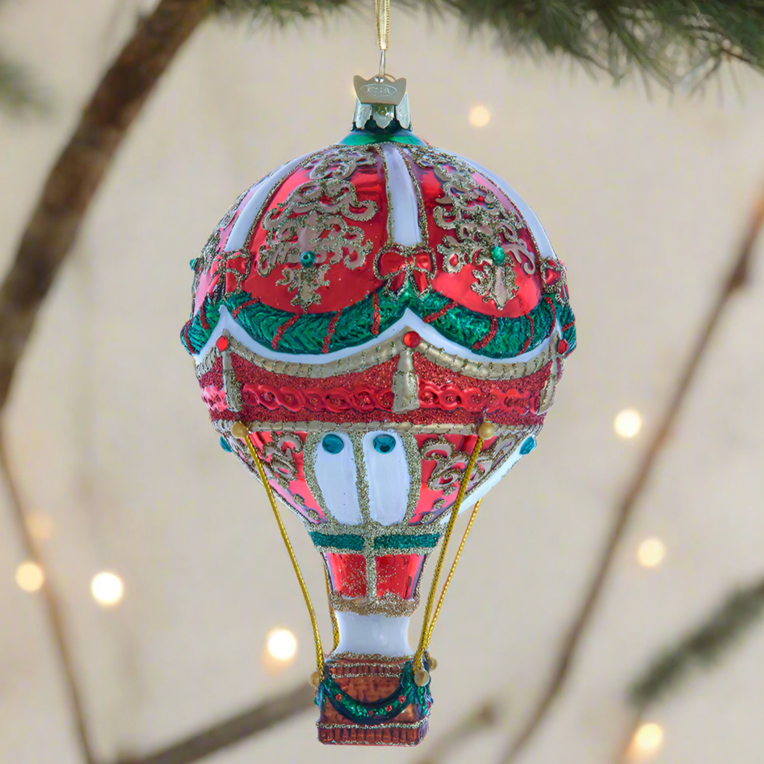 Bellissimo Christmas Hot Air Balloon Glass Ornament 6"