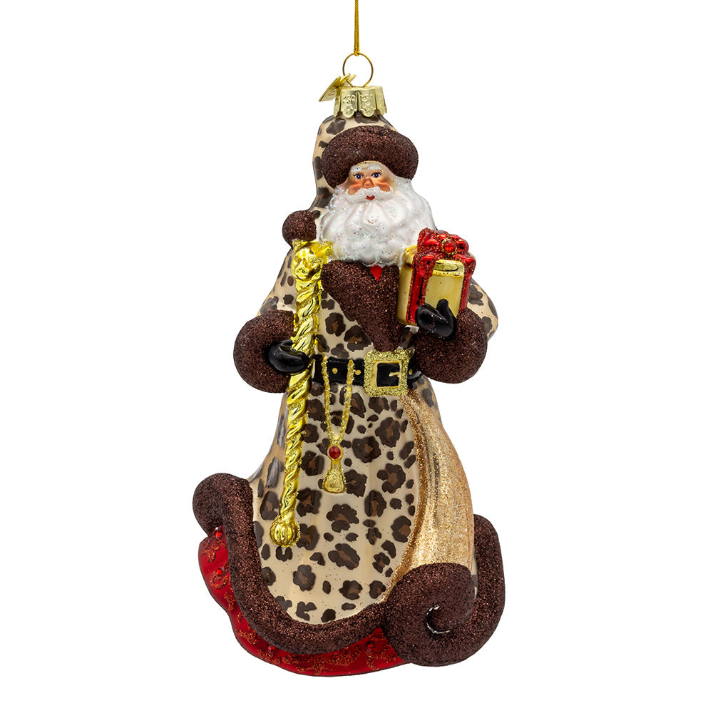 Bellissimo Santa with Leopard Print Robe Ornament 7"