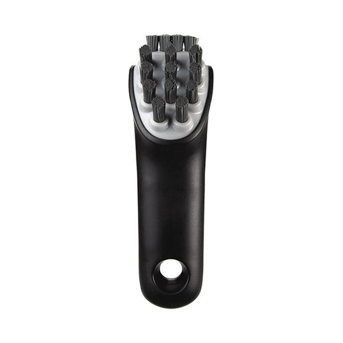 Short, stiff bristles remove cooked on foods without damaging surface