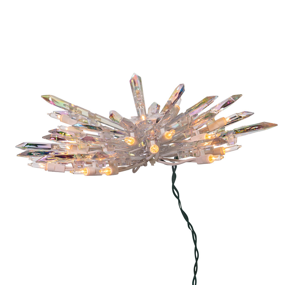This Kurt Adler UL 30-light crystal snowflake treetop with clear lights is a beautiful, festive way to add to your holiday décor and accent your Christmas tree lighting. This snowflake features a crystal look with bright shining clear incandescent bulbs.