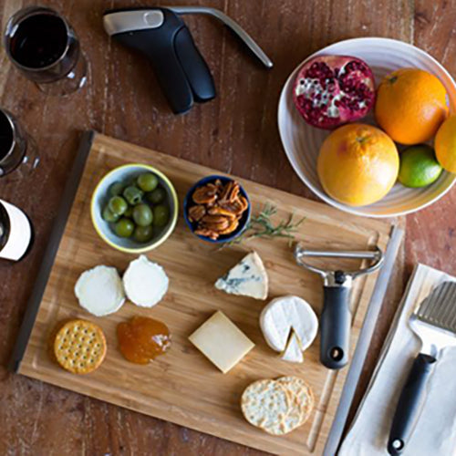 Smoothly cuts through medium and hard cheeses. The stainless steel wire on the Wire Cheese Slicer is easy to load and tightens into place with the convenient tensioning wheel. The sturdy, die-cast zinc construction and soft, comfortable handle make it a workhorse at parties. Includes two replacement wires.