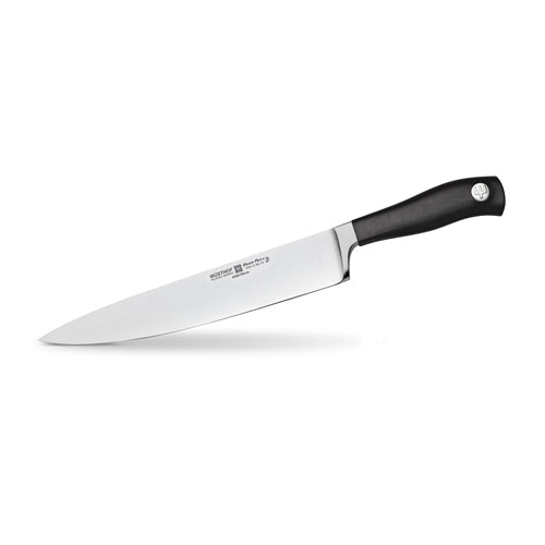 WÜSTHOF’s GRAND PRIX II full-tang knives are precision-forged from a single piece of an exclusive high-carbon stainless steel. Completely buffed and polished by hand, the GRAND PRIX II knife blade is seamlessly attached to a pebble-textured, specially developed polypropylene handle that provides a secure and comfortable grip. The GRAND PRIX II 10" cook’s knife is the work horse of the kitchen, or the essential kitchen knife. The cook’s knife is an indispensable all-purpose kitchen knife that can be used for chopping, mincing, slicing and dicing. Due to the weight and balance of the knife, it is also perfect for heavy duty work such as cutting thicker vegetables and meats.