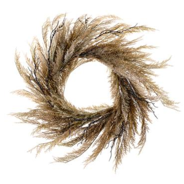 A bounty of beauty for your front door, on a mirror or as a candle ring for the dining table. This artificial grasses wreath is perfect for fall decor!