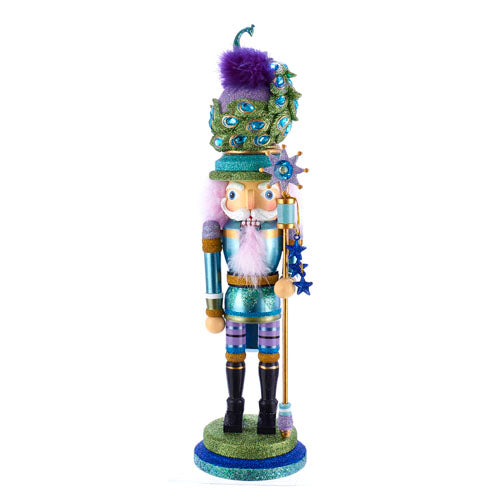 Hollywood™ Nutcrackers is a whimsical collection of nutcrackers created exclusively for Kurt S. Adler and features an assortment of designs that put a unique, vibrant, memorable twist on traditional nutcrackers. Add a peacock theme to your home with this 17.5-inch Peacock Hat Nutcracker. This nutcracker features blue, purple, green, and gold detailing. Topped off with a peacock perched on the hat, this nutcracker is a stunning addition to any holiday décor.