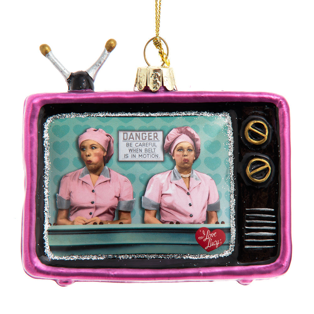 This "I Love Lucy® Glass TV Ornament" from Kurt Adler is a delightful and nostalgic addition to your holiday decor that pays tribute to one of the most beloved television shows of all time. This ornament features a miniature glass TV with a scene from the iconic "I Love Lucy®" series, capturing the timeless humor and charm of Lucy and Ethel. This charming ornament showcases intricate details with a lifelike appearance, including the black-and-white television screen displaying Lucy's antics. Crafted with attention to detail, this glass ornament is made from high-quality materials that evoke the nostalgia and joy of watching classic television. Celebrate the magic of the holidays and the joy of festive celebrations with our "I Love Lucy® Glass TV Ornament," and let it remind you of the laughter and happiness that this special time of year brings. Create cherished holiday traditions with this unique addition to your Christmas decorations, and let it be a symbol of the festive atmosphere and the timeless entertainment of classic television during the holidays.