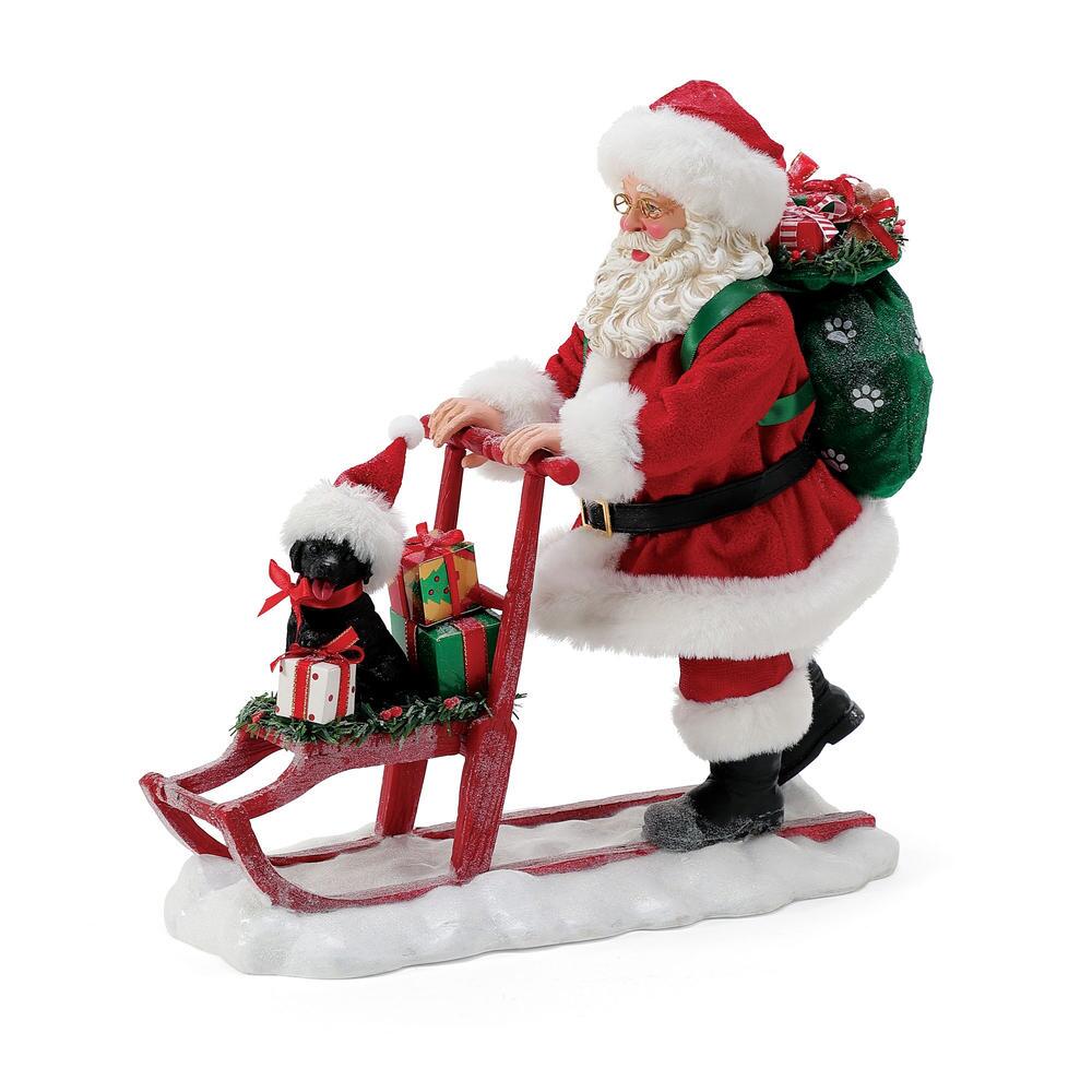 Santa and his furry friend are out having a kickin good time in this Possible Dreams Clothtique Collectible figurine.