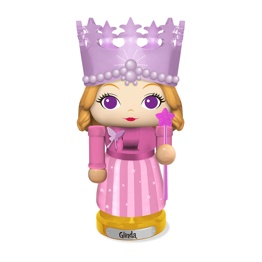 Bring the magic of Oz to your holiday decor with Kurt Adler's 5" Wizard of Oz™ Glinda Miniature Nutcracker. This delightful miniature captures the elegance and grace of Glinda, the Good Witch, in intricate detail. Featuring her signature pink gown, sparkling crown, and iconic magic wand, this nutcracker is a must-have for Wizard of Oz fans and collectors. Perfect for adding a whimsical and festive touch to your mantle, shelf, or holiday display.