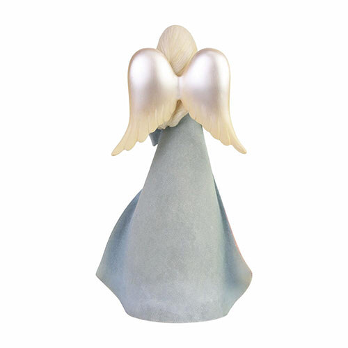 One nation under God, this angel again asks her creator to bless America. Holding the stars and stripes in one hand and the other over her heart pledging to the country, this angel will bring peace and patriotism to your home.