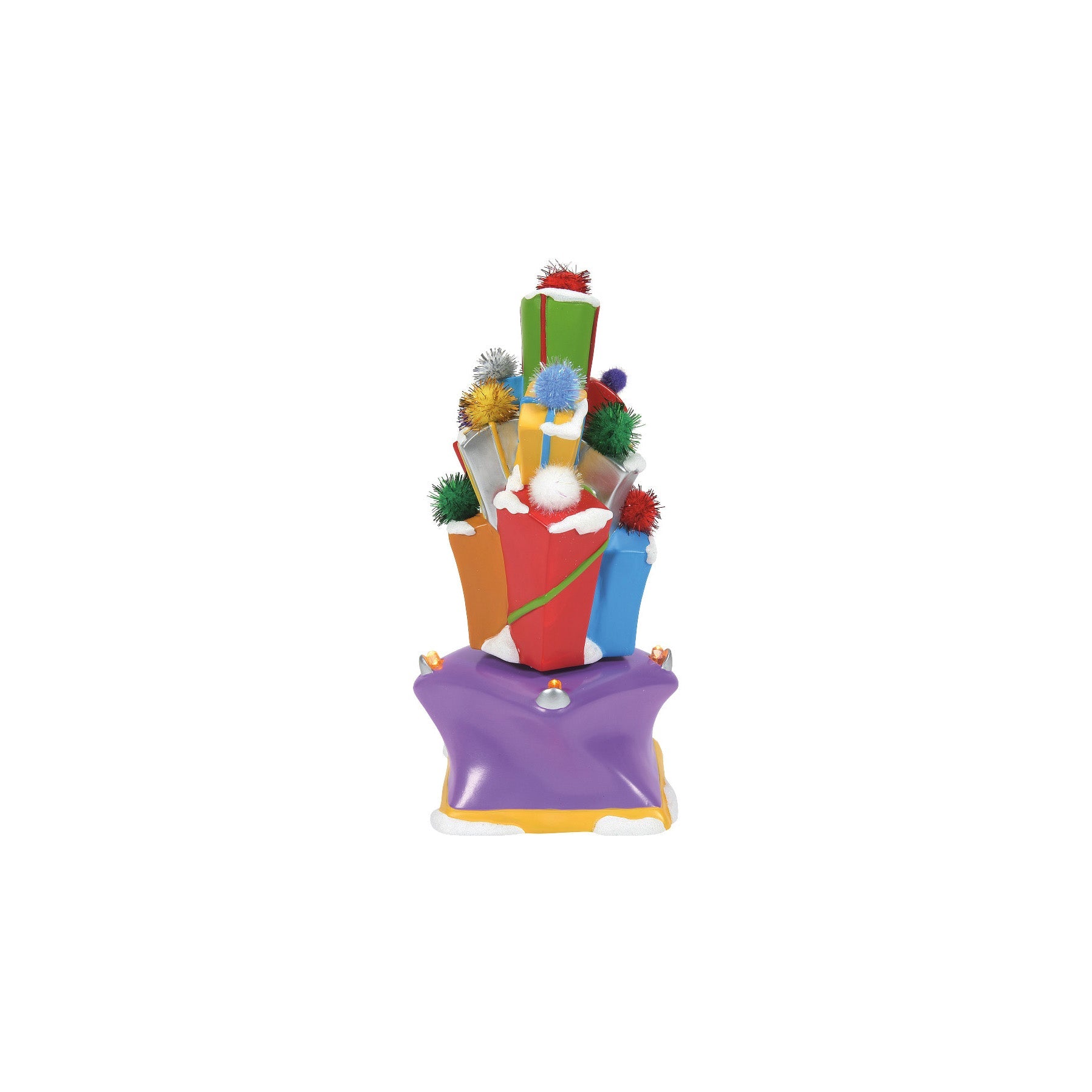 Properly wrapped then tippy-top stacked, the presents of Who-Ville spin glorious laps!