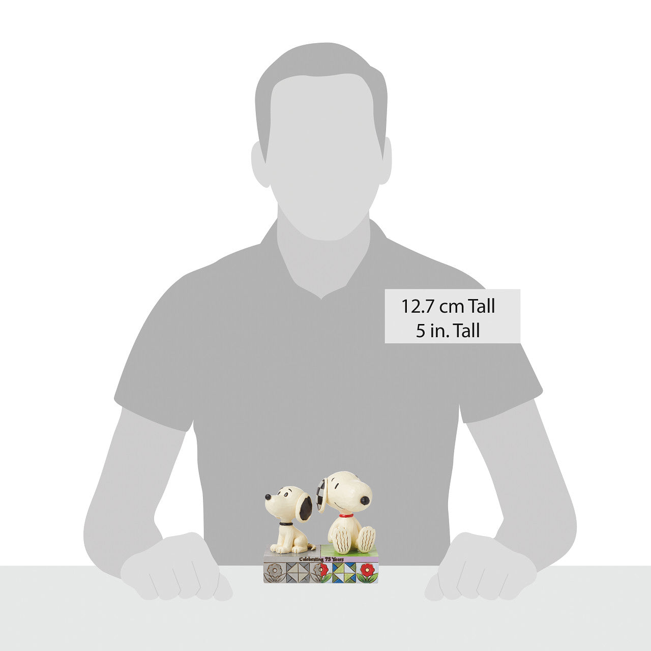 This enchanting Jim Shore bust features two timeless iterations of Snoopy standing back to back. One Snoopy embodies the classic 1950s style, while the other represents the updated Snoopy of today, showcasing the evolution of the beloved character.