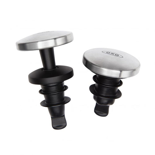 Preserve the flavors of your favorite red wine or save that crisp white for later with the OXO Steel Expanding Wine Stoppers. Simply press down on the flat top with stainless steel accent and the silicone seal expands to fit your bottle just right. The seal keeps air out of wine, while also preventing leaks and drips. The Stopper is designed to expand to fit your bottle just right, and can be stored on refrigerator doors or even lying down on the shelf.