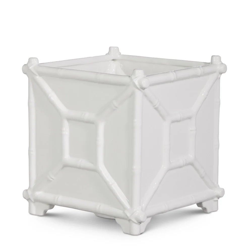 White Bamboo Planter 8.5"