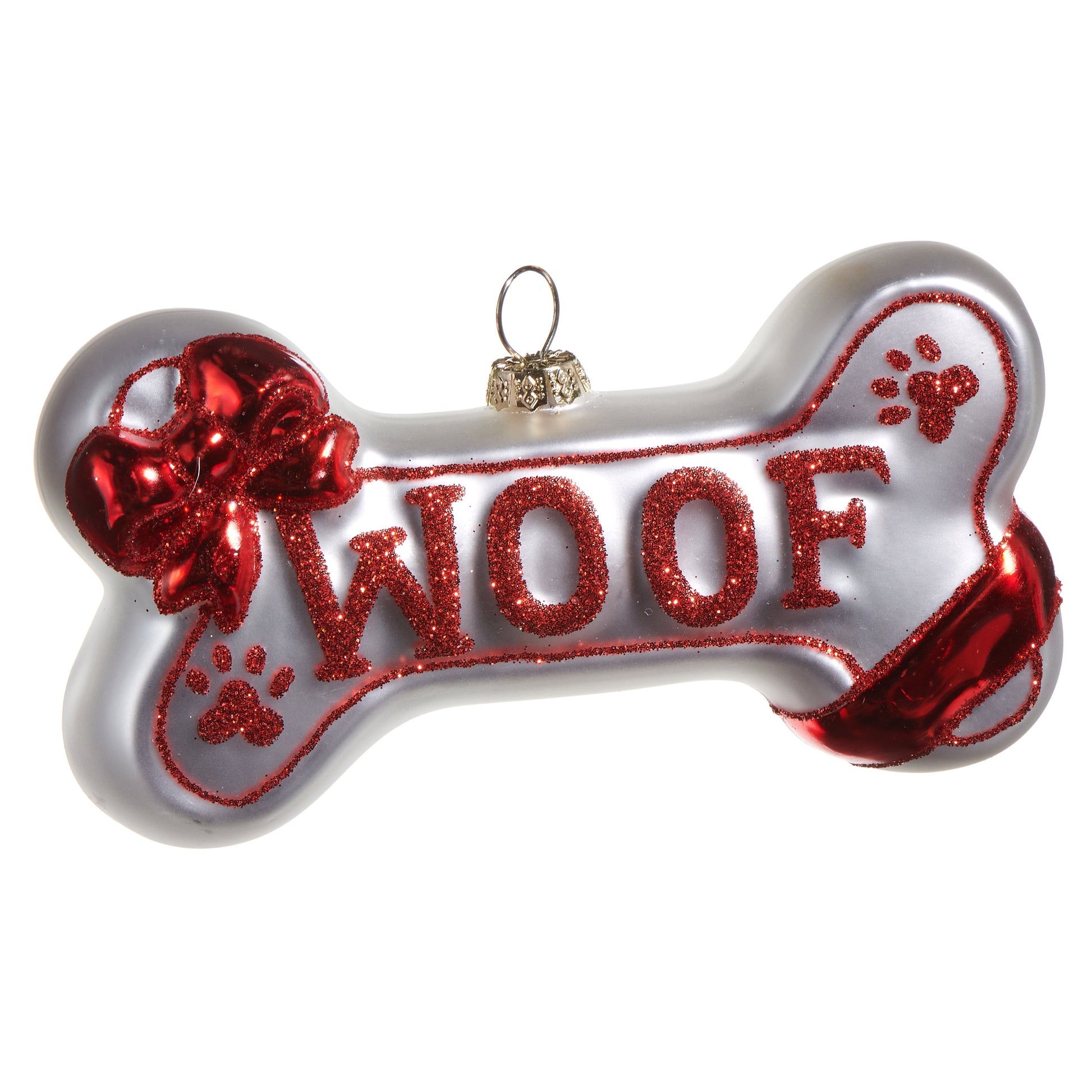 Woof Dog Bone Glass Ornament 5"